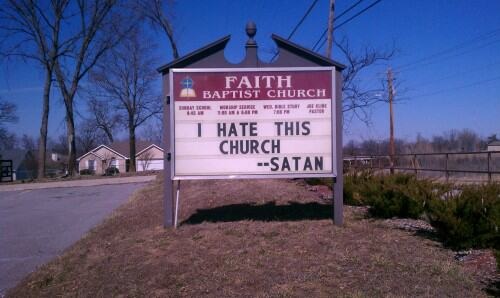 Schizo-Bild... "Ich hasse diese Kirche -- Satan" ? Hat die Babtisten-Kirche hier schon die dräuende Kritik vorweggenommen um alles was Kritik üben könnte dem Teufel anzulasten?
